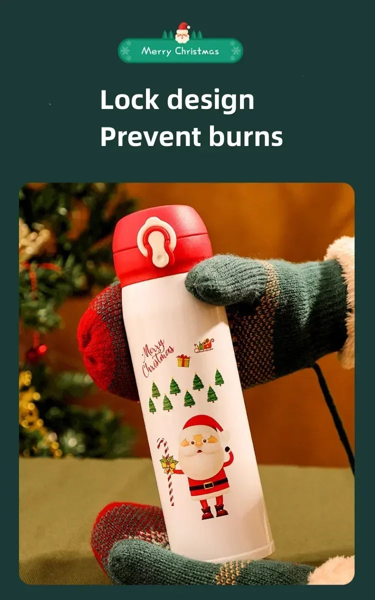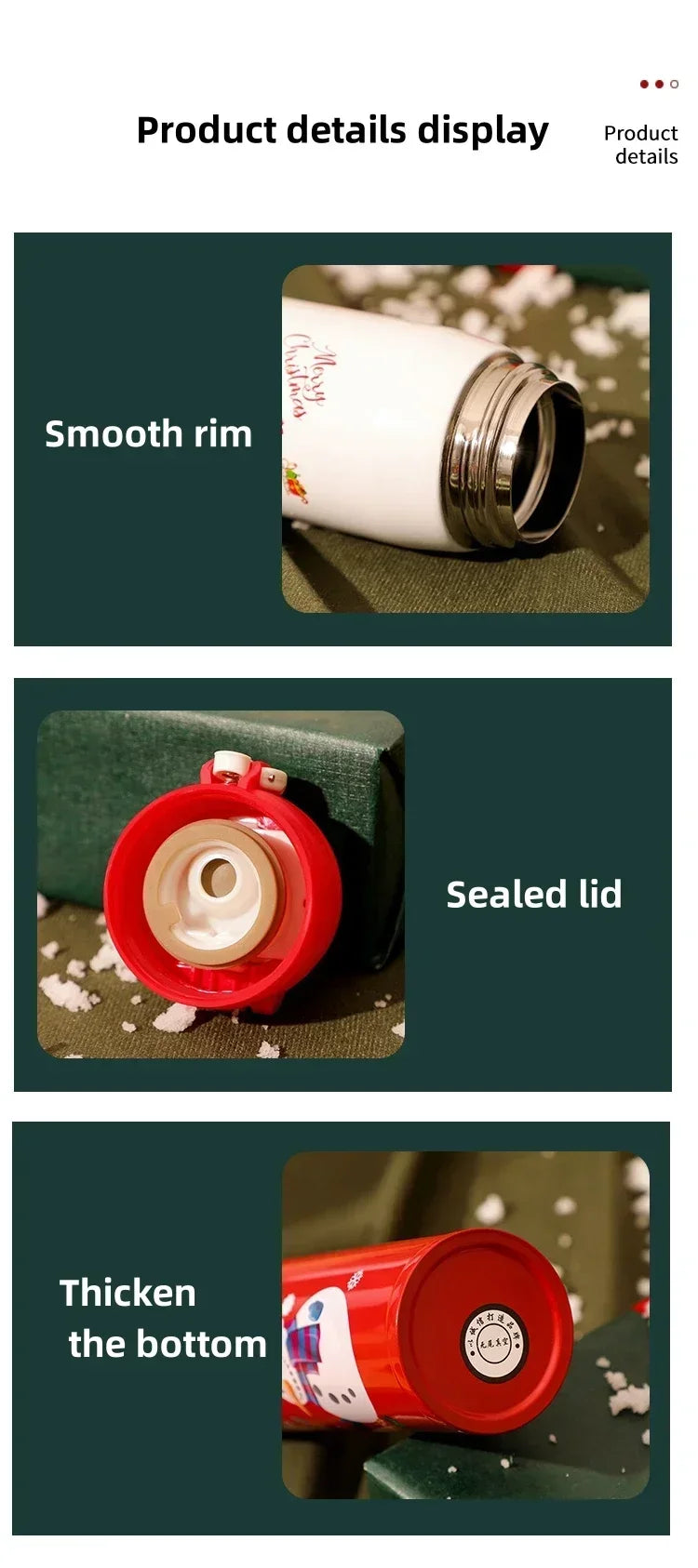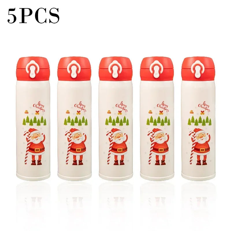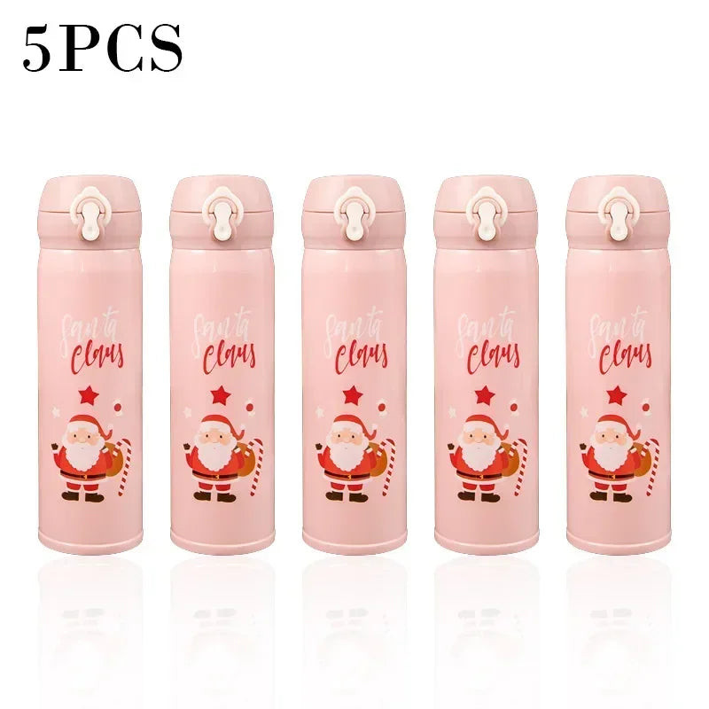 1-5PCS 500ml Christmas Thermos Cup Stainless Steel Vacuum Water Bottle with Lid Elk Santa Thermos Cup Christmas Gift Christmas